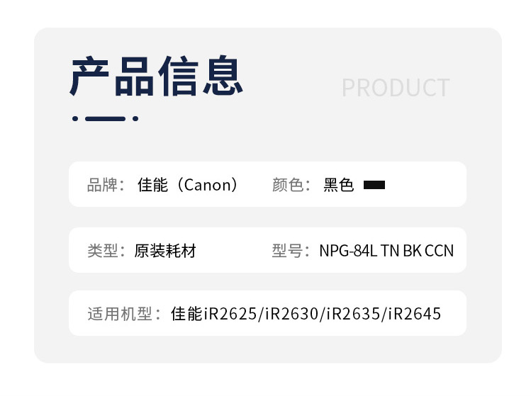 商品名稱:佳能(Canon)NPG-84L通用硒鼓,粉盒 黑色粉盒原裝低容量墨粉適用數(shù)碼復(fù)合機(jī)(iR2625/iR2630/iR2635/iR2645)