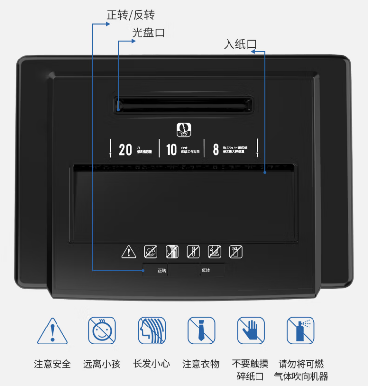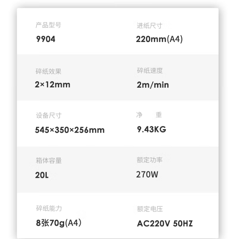 商品名稱:得力(deli) 9904 碎紙機(jī) 辦公商用碎紙機(jī) 單次8張 20L 持續(xù)10分鐘 可碎卡碎光盤