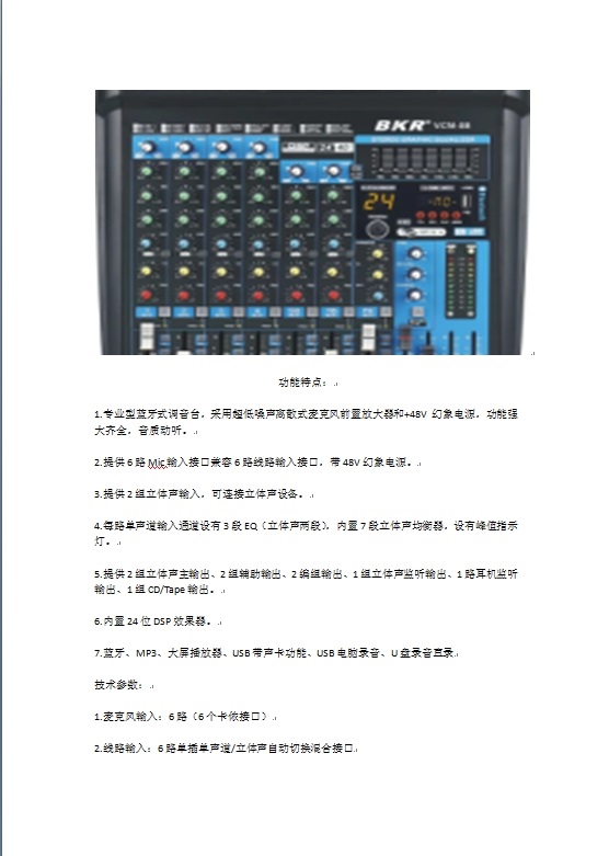 商品名稱:拜卡(BKR)VCM-08 演出調(diào)音臺 多路控制調(diào)音臺