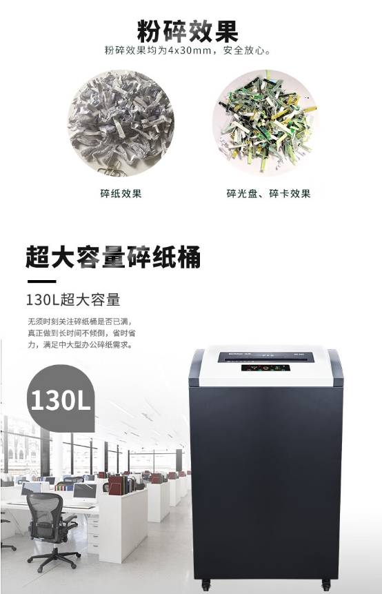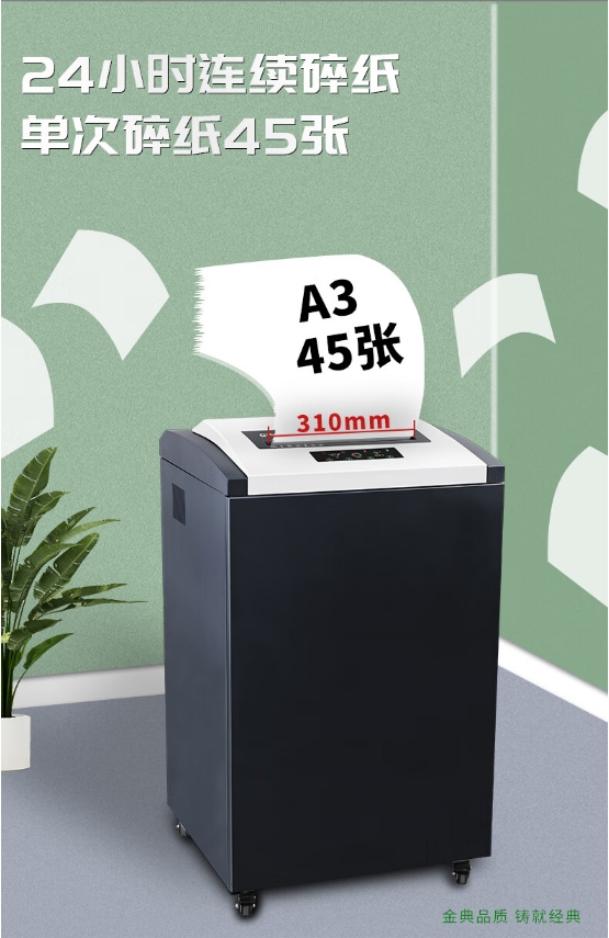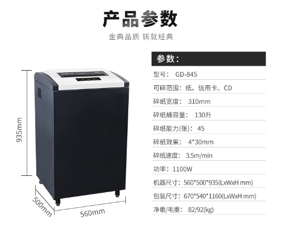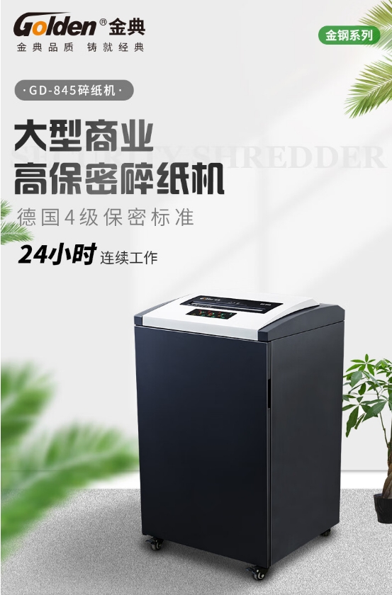 商品名稱:金典(GOLDEN) GD-845 碎紙機(jī) 4級(jí)保密連碎24小時(shí)單次45張130L可碎紙卡光盤CD