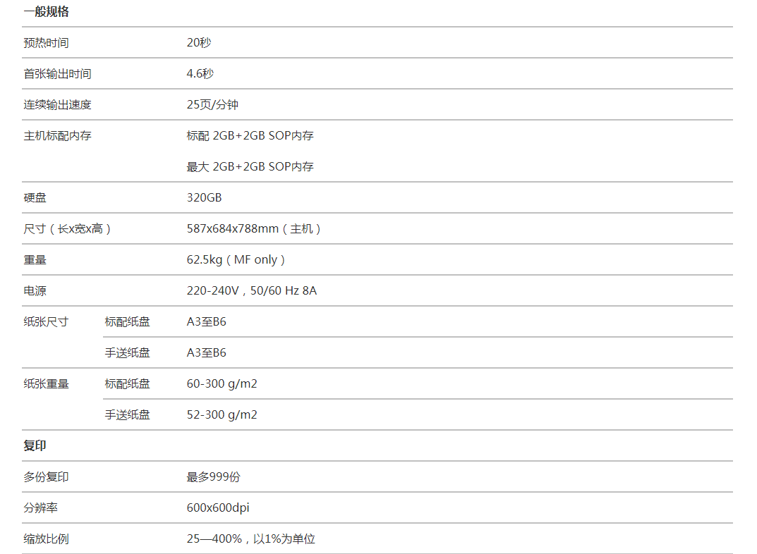 打印速度劃分:中速機(jī)(25頁~50頁/分鐘)