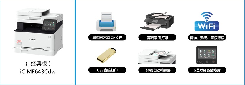商品名稱:佳能(Canon)iCMF643Cdw 彩色激光打印、復(fù)印、掃 描多功能一體機(jī)