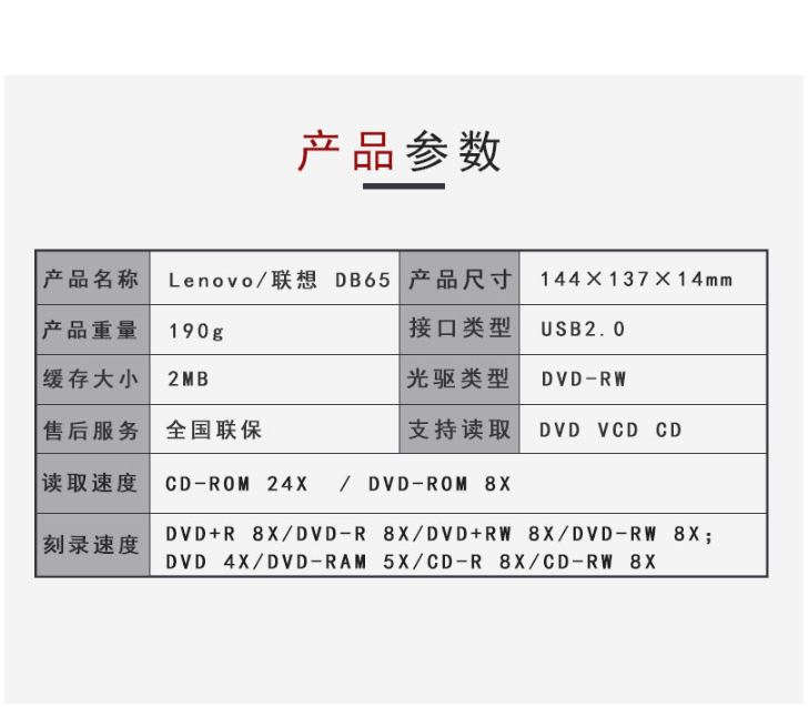 商品名稱:聯(lián)想(Lenovo)USB外接光驅(qū) 筆記本 臺(tái)式機(jī) 通用光驅(qū) DVD刻錄機(jī)DVD-RW DB65 USB外接光驅(qū)