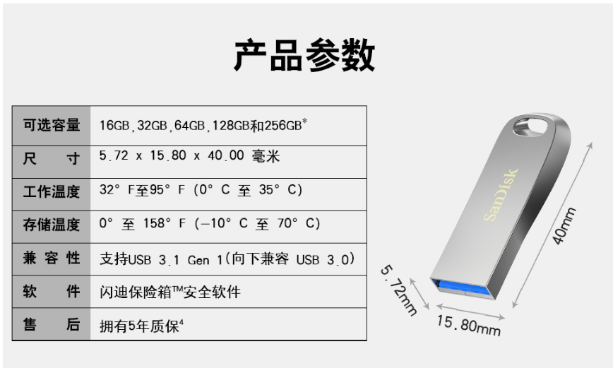 商品名稱:閃迪(SanDisk)USB3.1高速U盤CZ74酷奐銀色金屬外殼USB3.1 閃迪金屬U盤256G