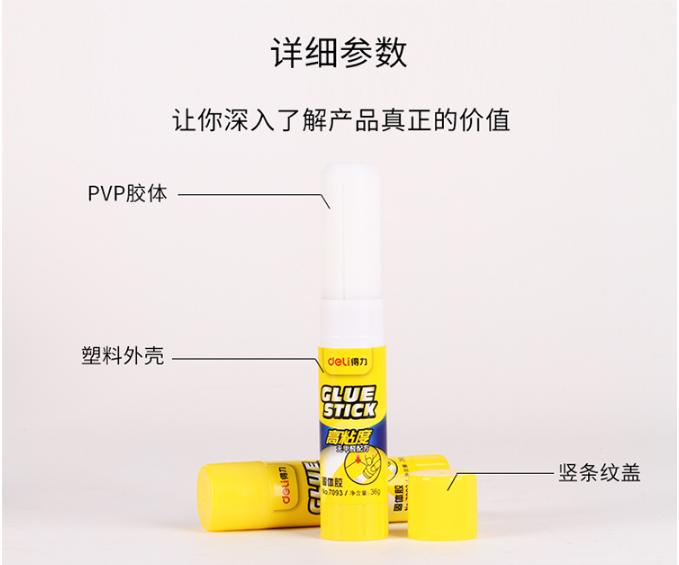 商品名稱:得力(deli)大號36g固體膠棒強(qiáng)力安全辦公文具高粘度飾品材料 得力(deli)膠棒7093大號36g(12只裝)