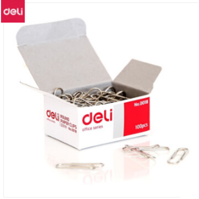 商品名稱:得力(deli) 0018 回形針 曲別針 100枚/盒 得力(deli)曲別針0018