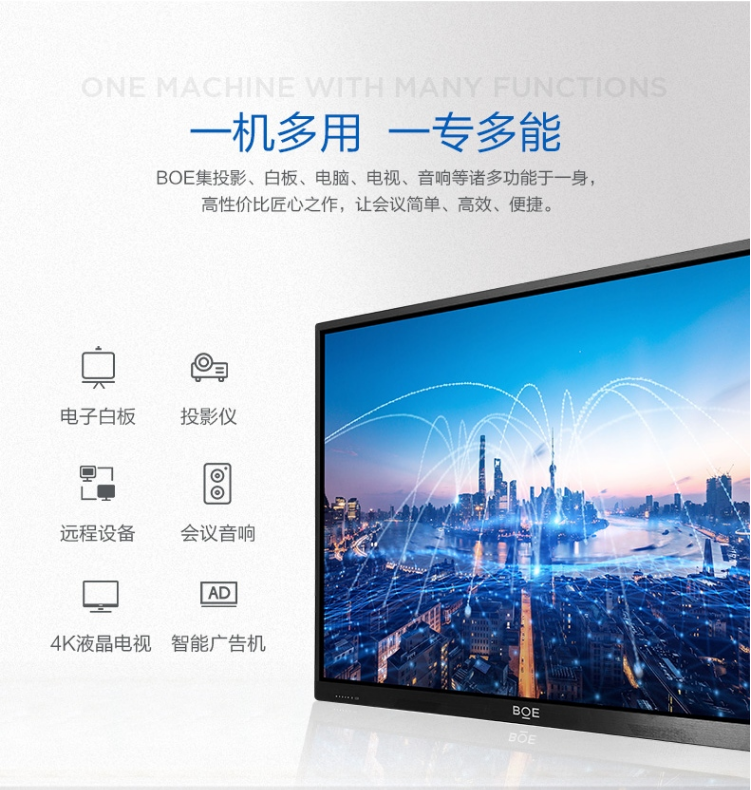 商品名稱:京東方BOE 會(huì)議平板 智能觸控會(huì)議一體機(jī)65英寸 無線投屏投影 視頻會(huì)議 商用顯示器 教學(xué)會(huì)議BWB65-GI4G