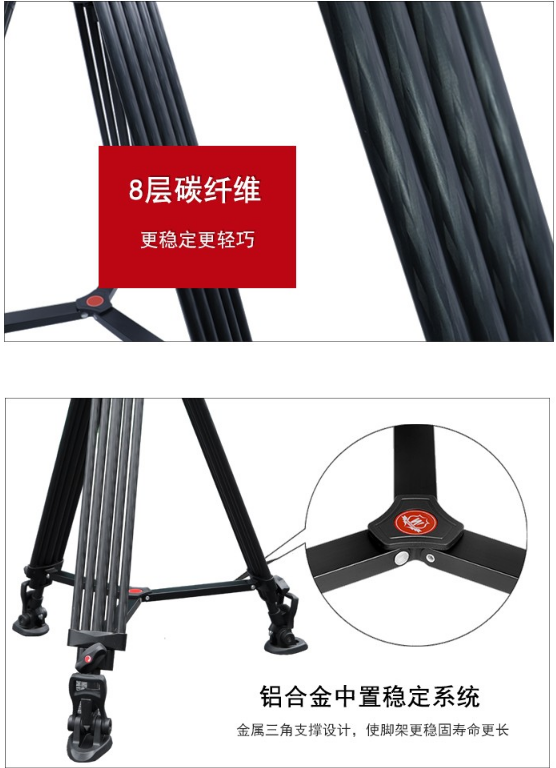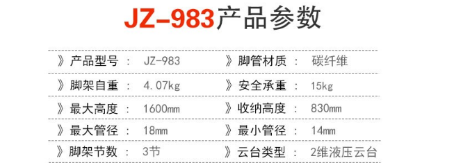商品名稱:沃爾夫?qū)╓OLFGANG)JZ-983+YT-06碳纖維三腳架液壓云臺(tái)三腳架攝像機(jī)單反攝影攝像 碳纖維三腳架沃爾夫?qū)鵍Z-983