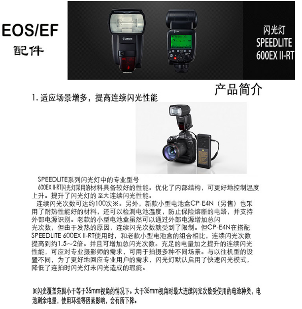 商品名稱:佳能(Canon)閃光燈機(jī)頂外置閃光燈自動(dòng)智能跳閃適用佳能EOS單反相機(jī) 適用佳能單反相機(jī)(EOS R5/R6/5Ds/5Dsr/90D/850D/5D2/60D/6D/6D2/7D/7D2等微單反相機(jī))佳能閃光燈600EXII-RT