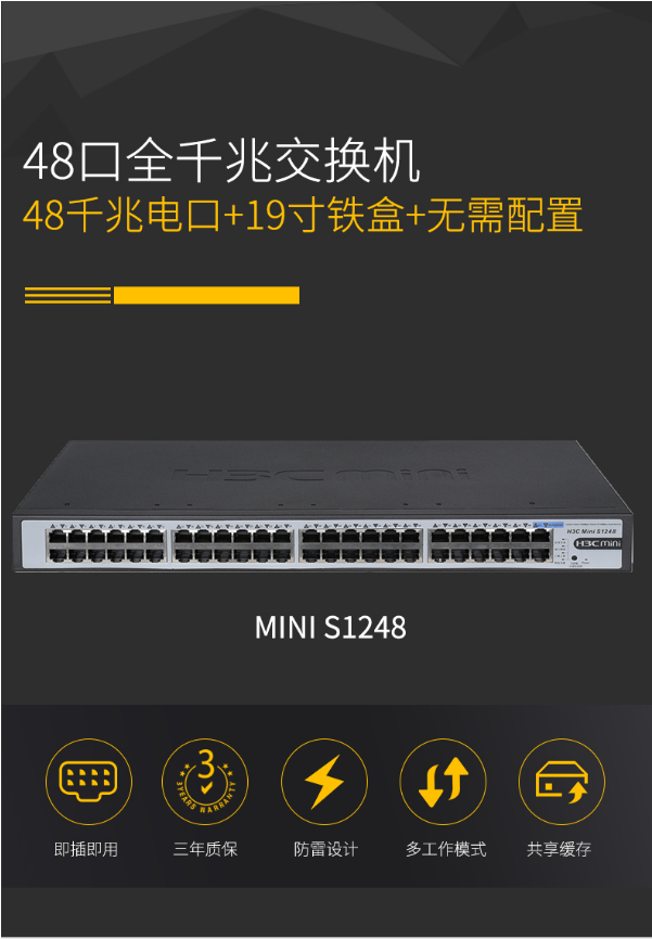 商品名稱:華三(H3C)企業(yè)級(jí)48口全千兆交換機(jī) 二層機(jī)架式防雷網(wǎng)絡(luò) 華三48口千兆交換機(jī)MINIS1248