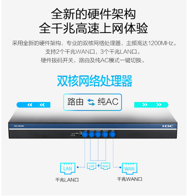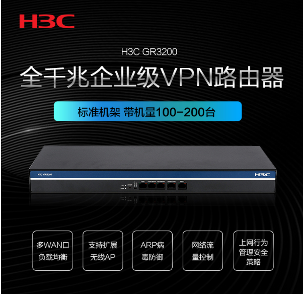 商品名稱:華三(H3C)多WAN口全千兆企業(yè)級(jí)VPN路由器 內(nèi)置AC防火墻 帶機(jī)量100-200 企業(yè)級(jí)路由器華三路由器GR3200