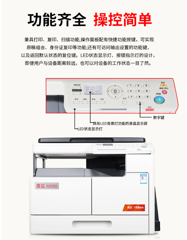 商品名稱:震旦(AURORA)A3復(fù)印機(jī)打印機(jī)一體機(jī)辦公A4黑白激光多功能復(fù)合機(jī)(打印 復(fù)印 掃描)震旦打印機(jī)AD188EN