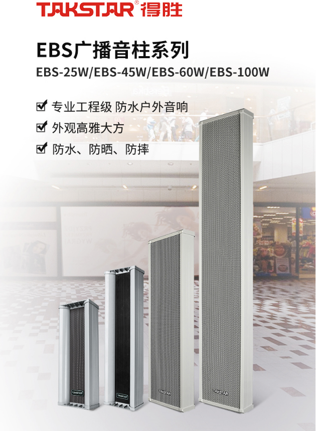 商品名稱:得勝(TAKSTAR)EBS-100W 壁掛廣播音柱 廣告戶外防水工程應(yīng)用 拉鋁外殼壁掛式音箱