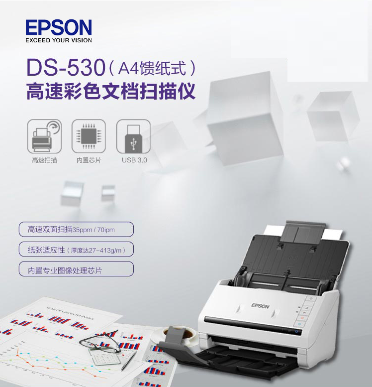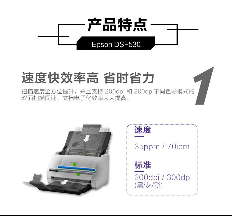 商品名稱:愛普生(EPSON)DS-530 掃描儀 A4高速饋紙式掃描儀 高清掃描 支持長(zhǎng)紙掃描